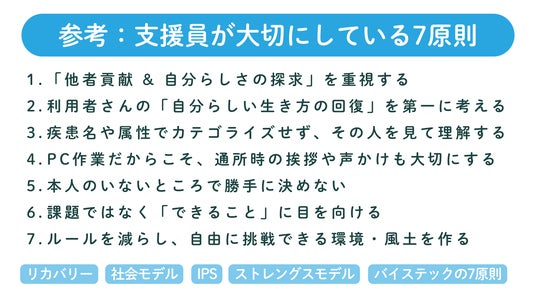 パパゲーノの支援員が大切にしている考え方を「7原則」として資料に明記しました。