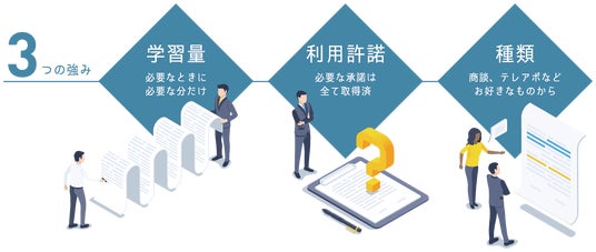 - コンプライアンスに準拠した権利処理 著作権および個人情報(音声データ)に関する権利関係を完全に整備。商用利用においても安心して導入いただけます。