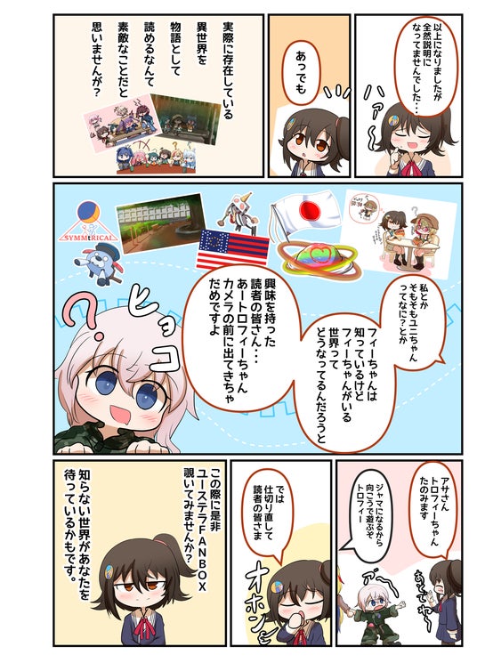 本解説漫画ではフィーちゃんやユニちゃんなど、ユーステラの人気キャラクターたちが登場し、読者にユーステラFANBOXの魅力を紹介しております。