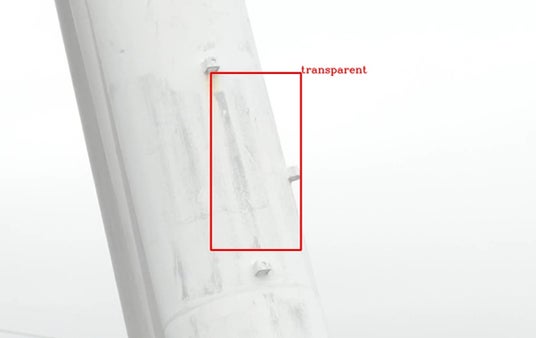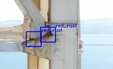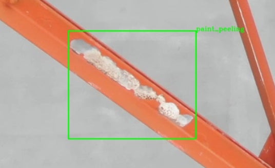 鉄塔部材における、赤さび、剥がれ、透けといった損傷の検出が可能。図:鉄塔における赤さび・剥がれ・透けの検出例