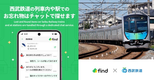 西武鉄道株式会社(本社:埼玉県所沢市、社長:小川 周一郎、以下「西武鉄道」)は、株式会社find(本社:東京都港区、代表取締役CEO:高島 彬、以下「find」)が提供する「落とし物クラウドfind」を導入します。