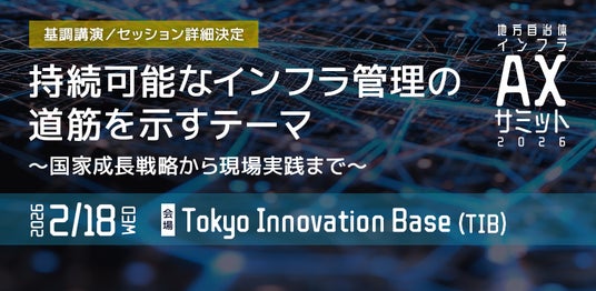 JAXA認定の宇宙ベンチャー 株式会社天地人(東京都中央区 代表取締役 櫻庭康人)が運営をおこなう地方自治体インフラAXサミット2026 実行委員会は、2026年2月18日(水)にTokyo Innovation Base (TIB) 1階 SQUARE-1で開催する「地方自治体インフラAXサミット 2026」のプログラム詳細を発表いたします。