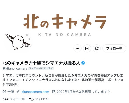 北のキャメラ@十勝でシマエナガ撮る人 Xアカウントアカウント:@kitano_camera