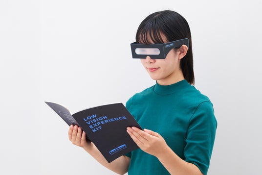 ロービジョンの多様な見え方を疑似体験するメガネで、見えない世界を歩くためのキット。