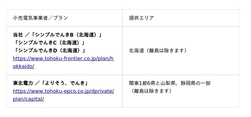 (参考:東北電力グループの北海道や首都圏にお住まいの方向けの電気料金プラン)