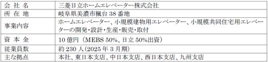 三菱電機ビルソリューションズ株式会社(取締役社長 織田 巌、本社:東京都千代田区、以下、MEBS)は、このたび、株式会社日立製作所(執行役社長兼 CEO 徳永俊昭、本社:東京都千代田区、以下、日立)との合弁会社であり、小型エレベーター事業を担っている三菱日立ホームエレベーター株式会社(取締役社長:荒木 博司、本社:岐阜県美濃市、以下、三菱日立ホームエレベーター)について、当社が日立から全株式を取得し、三菱日立ホームエレベーターを完全子会社化する株式譲渡契約を日立との間で締結しましたので、お知らせいたします。なお、当該株式の取得は、関係当局からの認可取得その他一般的取引条件の充足を得た上で実行予定です。