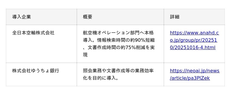 「neoAI Chat」は、金融機関をはじめとする150社以上の企業に導入されています。