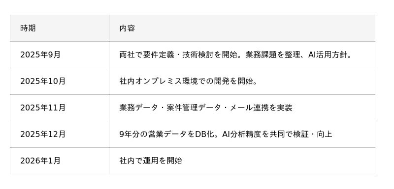 9年分の営業データを統合し、自然言語で分析可能に。両社の強みを活かしたAIシステムの社内運用を開始