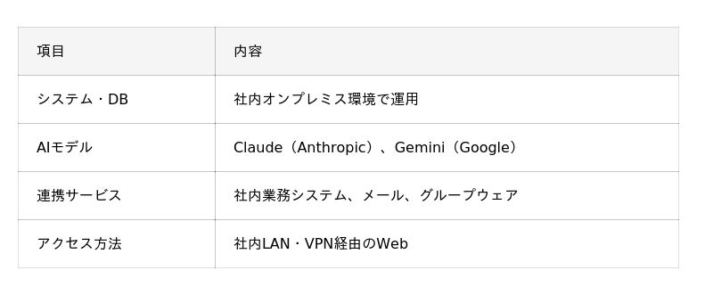セキュリティの確保: 社内オンプレミス環境での運用により、機密データの外部流出リスクを低減