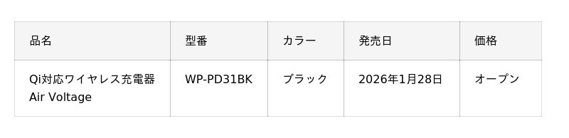 株式会社電響社(大阪市浪速区、代表取締役社⾧:山下 俊治/以下、電響社)は、マクセルブランドの充電器シリーズ「Air Voltage(エアボルテージ)」より、Qi2 25W認証を取得したワイヤレス充電器「WP-PD31BK」を2026年1月28日に発売します。