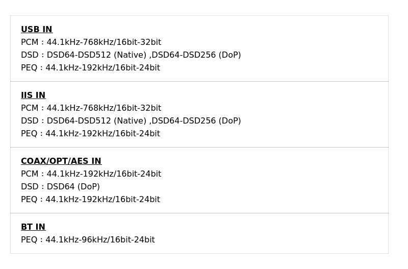 入力系統:USB / BT / OPT1 / OPT2 / COAX1 / COAX2 / AES / IIS