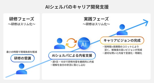 研修×AIのシェルパス、最小限の研修時間と職場での内省を組み合わせた独自のキャリア支援プログラムをリリース。週1回15分のAI対話で実体的なキャリア開発を強力に推進。