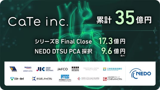 株式会社CaTe、NEDOディープテック・スタートアップ支援基金/ディープテック・スタートアップ支援事業(DTSU)PCAフェーズに採択