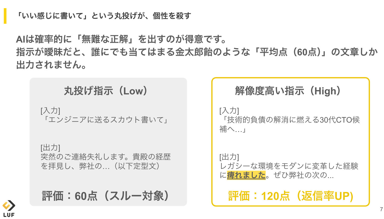 この状況に対し、「AIに仕事を奪われるな、使いこなせ」というメッセージのもと、LUFが持つ採用ノウハウとAI活用の知見を掛け合わせ、すべての採用担当者がAIを“最強の相棒”にするための実践マニュアルとして本資料を開発しました。