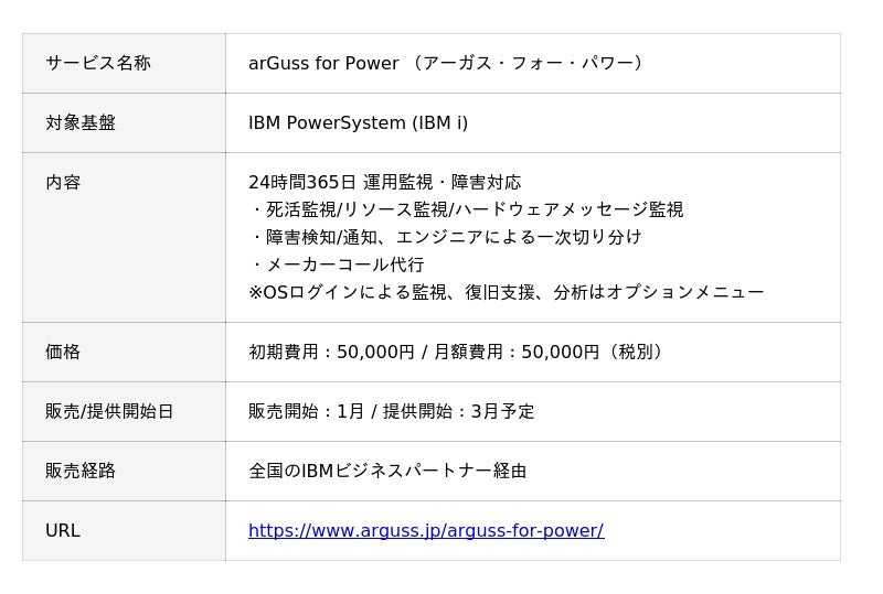 プロの有人監視を月額5万円の破格で実現~ IBM i の「夜間・休日の体制維持」課題を解決する24/365のサーバー運用監視サービス「arGuss for Power」を提供開始