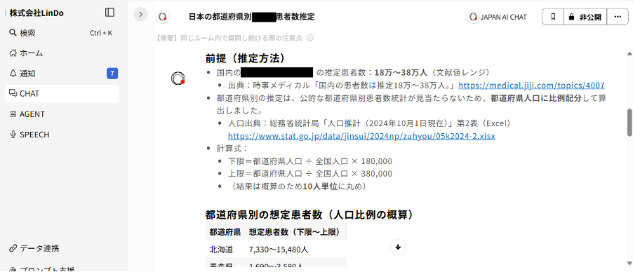 LinDoは、海外で承認済みまたは承認が見込まれる医療用医薬品の日本での導入可能性を探索・検討する製薬スタートアップです。同社は、海外医薬品の導入検討における意思決定の初動段階で方向性を絞り込むため、複数の大規模言語モデルを使い分けられるJAPAN AIを導入しました。調査会社への依頼時に用いる質問設計と同様の形式で社内にテンプレートを用意し、疾患名などの変数を入力することで一次検討の結果を出力可能な環境を整え、人は読解と判断に集中できる仕組みを構築しています。
