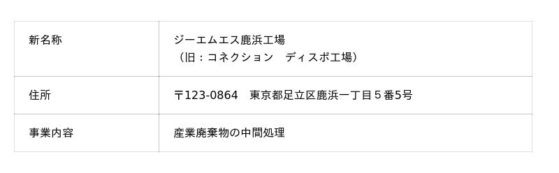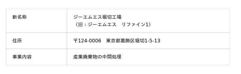 株式会社リファインバースグループ(本社:東京都千代田区/代表取締役社長:越智晶、以下「当社」)は、連結子会社である株式会社ジーエムエス(東京都千代田区、代表取締役 増井 豪、以下「ジーエムエス」)が当社連結子会社である株式会社コネクション(東京都足立区、代表取締役 増井 豪、以下「コネクション」)を2026年2月1日付で吸収合併することを決定しました。これに伴い、同日付で一部工場の名称を下記の通り変更いたします。