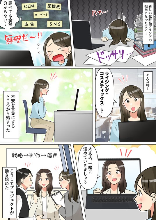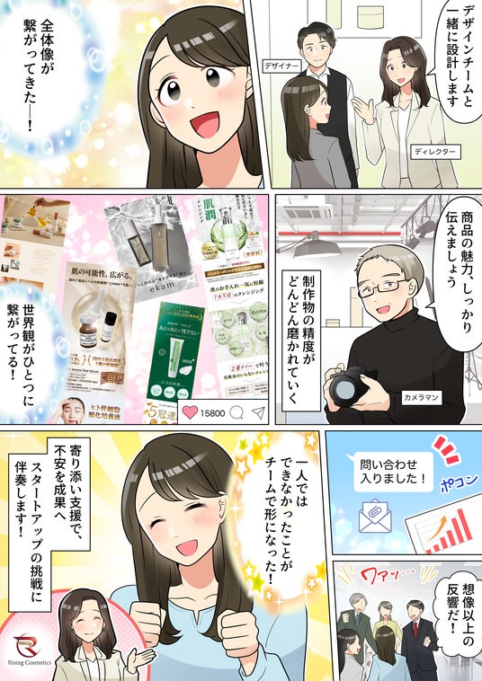 スタートアップ企業の化粧品ローンチを伴走支援企画。OEM・広告制作・PRまで一気通貫。株式会社ライジング・コスメティックスが漫画を活用したブランド支援を強化