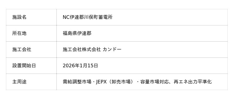 【日本蓄電池株式会社】福島県伊達郡にて系統用蓄電施設「NC伊達郡川俣町蓄電所」蓄電池設置開始