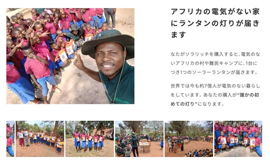 ソラリッチを1台買うと、未電化地域の家庭に1つソーラーランタンが届きます。