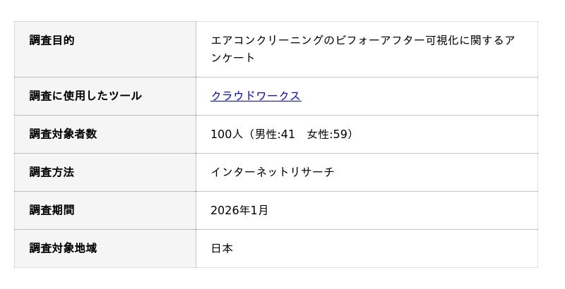 エアコンクリーニングのビフォーアフター可視化に関するアンケート調査の概要
